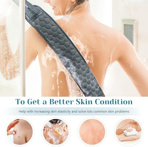 Inmorven Back Scrubber for Shower Exfoliating Body Scrubber 40 inch Double-Sided Back Exfoliator Scrub Towel, Bath Body Brush Widened Back Washer with Handle for Men and Women (Grey)