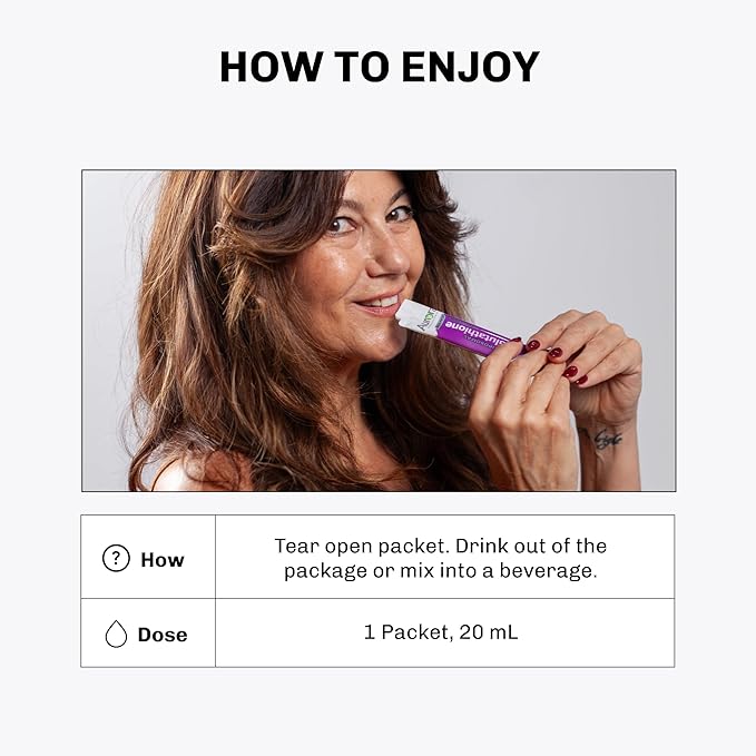 - EASY DAILY USE, ANYTIME ANYWHERE: Take 1 single-serve packet daily, or as directed by your healthcare provider. Tear at the notch and mix the liquid into up to 16 fl oz of water, juice, or your favorite drink. Shake or stir thoroughly and enjoy the benefits of fast, on-the-go antioxidant support for your immune system, skin, and liver health.