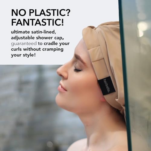 Hairbrella Luxurious Satin-Lined Adjustable Shower Cap For Women, 100% Waterproof, Reusable, Washable, Breathable, No Plastic (Black)