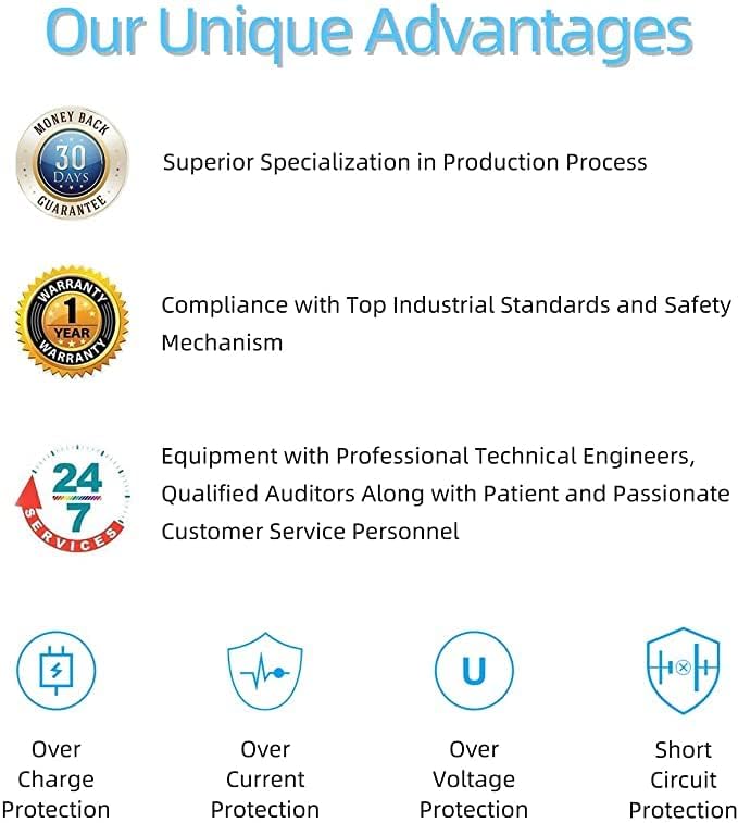 - 【Security】Replacement chargers manufactured with the highest quality materials and include multiple smart features safeguarding against IV - incorrect voltage, SC - short circuit, IO - internal overheating . Our Products are in Compliance with Top Industry Standards.