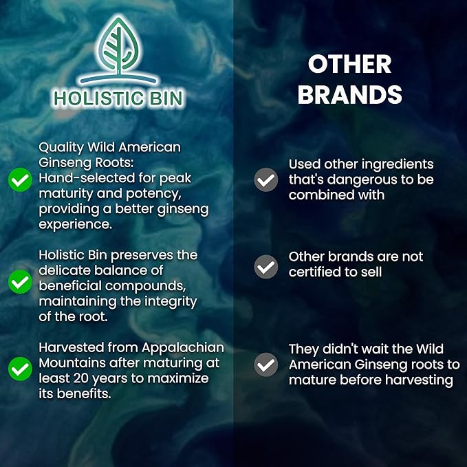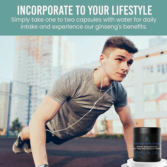 - WILD AMERICAN GINSENG: Our premium ginseng capsules are made from American Ginseng (Panax Quinquefolius) roots that are wild harvested in the Appalachian Mountains after maturing at least 20 years.
