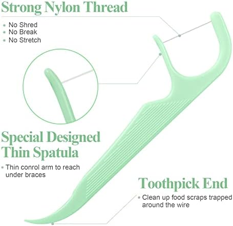- Quick & Convenient: The floss thread is highly elastic and sturdy, not easy to shred or break during use. Ergonomic grip handle provides better hold and control while flossing your braces. Sturdy thread and unique design make it easy and fast to floss
