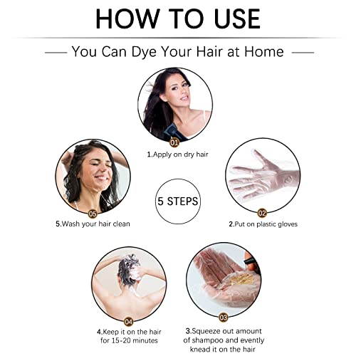 - 【Easy & Quick to Use 】No more hair dye kit ! Just wear the gloves(provided in the package ),and apply the black hair color shampoo on the DRY hair,rub it evenly for 5 minutes,and hold it on for 10-15 minutes,then wash it.It's very fast and easy to get black shiny hair,saving time and money. (Warm Note): Take a skin test before first using.