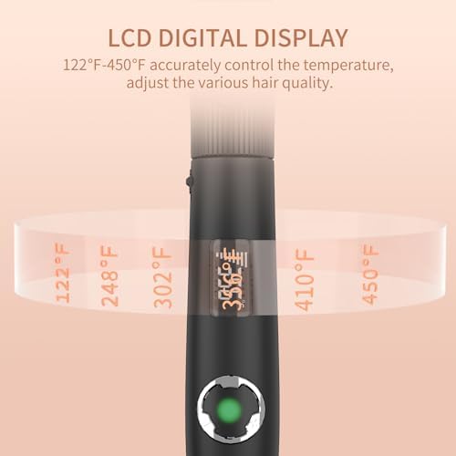 - 【MULTIPLE Temperature Settings & LCD Display】The curling wand has different temperature settings from 122°F to 450°F. Whether your hair is hard or soft, coarse or sleek, you can choose the right temperature to create your hairstyle. The hair curling wand is equipped with an LCD display screen, which can display the real-time temperature during the heating process.