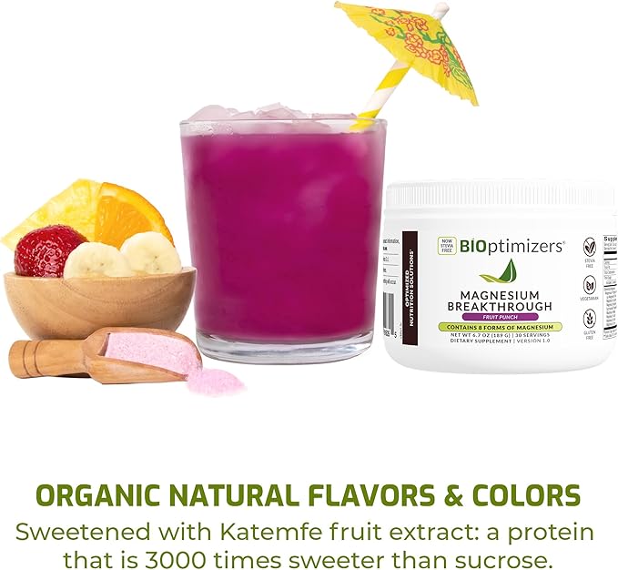 BIOptimizers Magnesium Breakthrough Drink Fruit Punch - 8 Forms of Magnesium: Glycinate, Malate, Citrate, and More - Natural Sleep and Brain Supplement – 5.4 oz (30 Servings)
