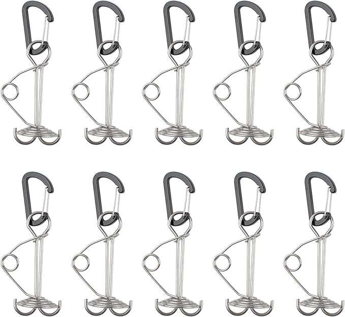 - [High-Quality Material]: It is made of high-quality aluminum alloy and stainless steel. The surface of the buckle is painted with paint, which is not easy to corrode, and the whole is not easy to deform, sturdy and durable, which can effectively prevent the outdoor camping tent from falling off.