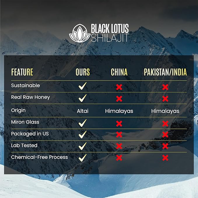 - INTEGRITY & POTENCY: Every batch of Black Lotus Shilajit for men and women is third-party lab verified in the US for safety, purity, and potency. Sustainably gathered and Fair Trade sourced, it has been purified at temperatures below 104°F.