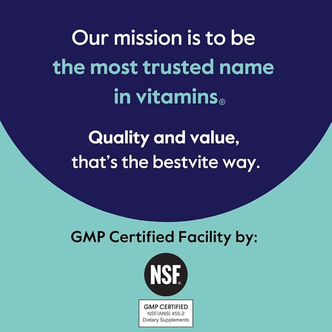 - NSF GMP CERTIFIED FACILITY: Bestvite’s facility is NSF/ANSI 455-2 Dietary Supplements Good Manufacturing Practice (GMP) certified. Earning GMP certification from NSF verifies that a manufacturing facility has the proper methods, equipment, facilities, and controls in place to produce dietary supplement products.