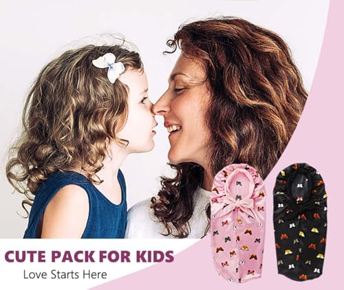 - Kids Satin Hair Bonnet for Sleeping to Protect Hair: Our long satin bonnet is made of premium soft satin,it's breathable,lightweight,skin-friendly.It can well prevent the hair from tangling,frizz while sleep.Sleeping in kids silk bonnet,It helps to keep hair hydrated,retain hairstyles,reduce the split ends and prevent facial breakouts