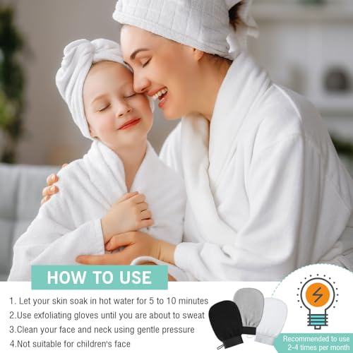 - Easy to Use and Maintain: the bath mitt comes with a handy hook for convenient storage and drying after use; Before scrubbing your skin, soak it in warm water and apply gentle pressure, especially on the face and neck areas; Expect a slight shrinkage after soaking the gloves in water, which is a normal occurrence and won't affect the functionality of the gloves