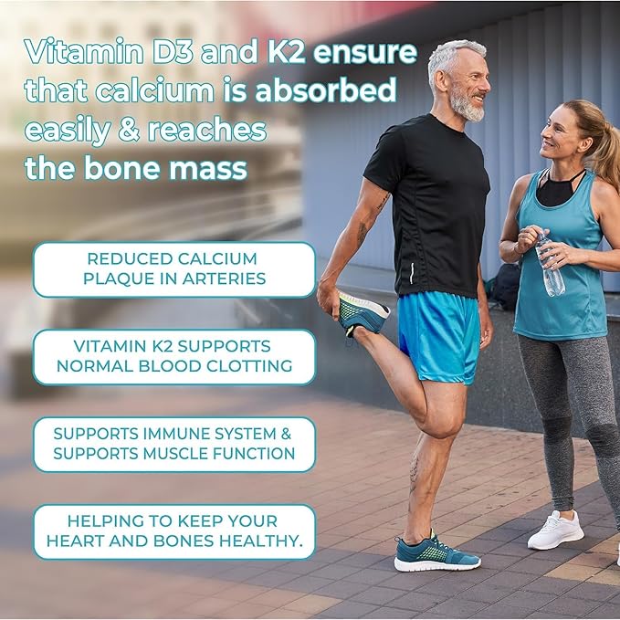 - ✅OPTIMISED ABSORPTION - We've carefully formulated this supplement for enhanced absorption. Vitamin D3 ensures efficient calcium absorption, and Vitamin K2 helps regulate its distribution, ensuring it reaches the bones for maximum benefit.