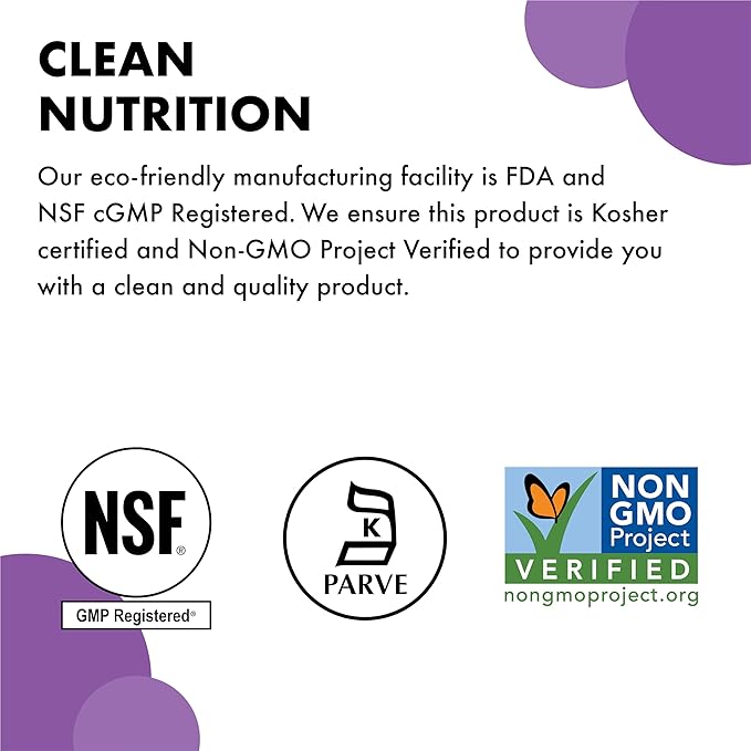 - CLEAN NUTRITION - This product is Non-GMO, Vegan, Kosher, Gluten-Free, Soy-Free, Milk-Free and is also free of egg, fish, crustacean shellfish, tree nuts, and more! Made without any unnecessary binders, fillers, or additives to maintain nutrient integrity. Each ingredient in our formulas has undergone analytical testing to verify they meet specifications for identity, purity, and potency.