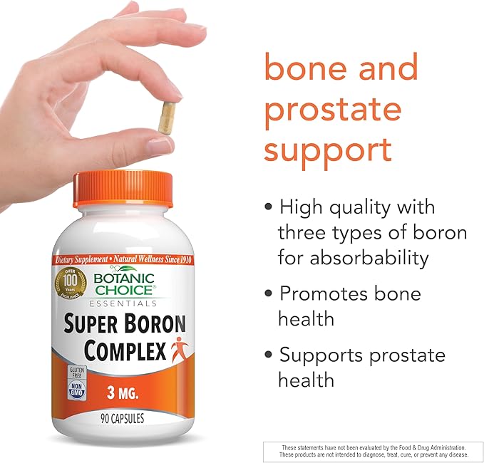 Botanic Choice Super Boron Complex (3mg) - Promotes Bone & Prostate Health by Metabolizing Calcium & Magnesium - 3 Forms of Boron for Men & Women - 2 Pack