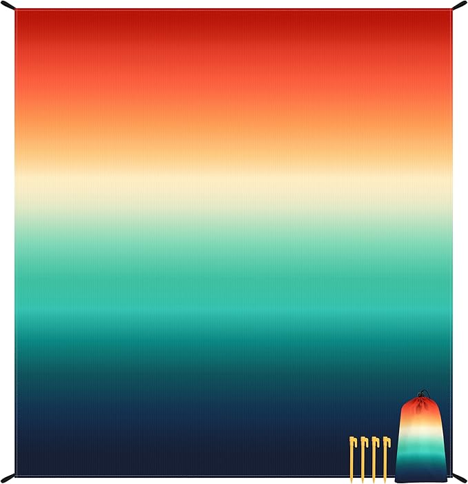 78''×86'' Large Colorful Beach Blanket 4-6 Adults, Waterproof Sandproof Picnic Mat w/ 4 Stakes, Compact Lightweight Portable Pocket Outdoor Travel Tarp for Camping, Hiking, Concert - Sunset Gradient