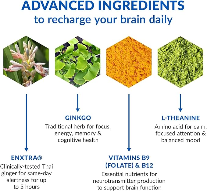 - ALERTNESS WITHOUT THE CRASH. Powerful blend of clinically-studied ingredients for brain support; enXtra (Thai ginger) is shown to increase alertness and decrease fatigue without the crash; ginkgo has long been used for focus, energy and overall cognitive health.