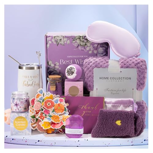 Birthday Gifts Unique for Women Get Well Soon Gifts, Self Care Baskets Bath Set Care Package Thinking of You Gifts Relaxation Gifts for Women Mom Her Friend Wife Grandma w/ Blanket