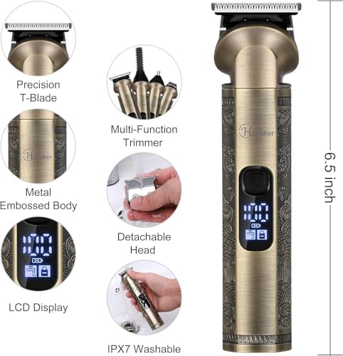 Hatteker Professional Hair Clippers for Men Beard Trimmer Clippers and Trimmer Set Waterproof T-Blade Trimmer Cordless Grooming Kit Nose Body Hair Trimmer Barber Clippers Hair Cutting Kit