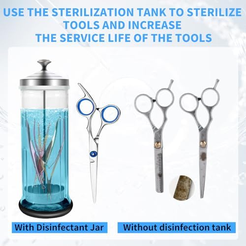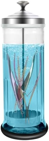 - 【High-Quality and Humanized Design】The disinfectant jar is made of high-quality and durable glass, suitable for daily use to store barbicide disinfectant liquid. The stylish appearance and stainless steel lifting tray make it easy to take out the metal tools of nail salons after disinfection, keeping hands away from any barbicide irritation
