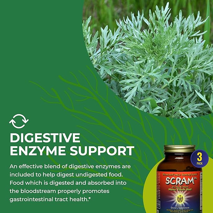 HealthForce SuperFoods Scram - Herbal Supplement with Milk Thistle, Wormwood & Black Walnut - Digestion Support Capsules - 150 Vegan Capsules (Pack of 3)