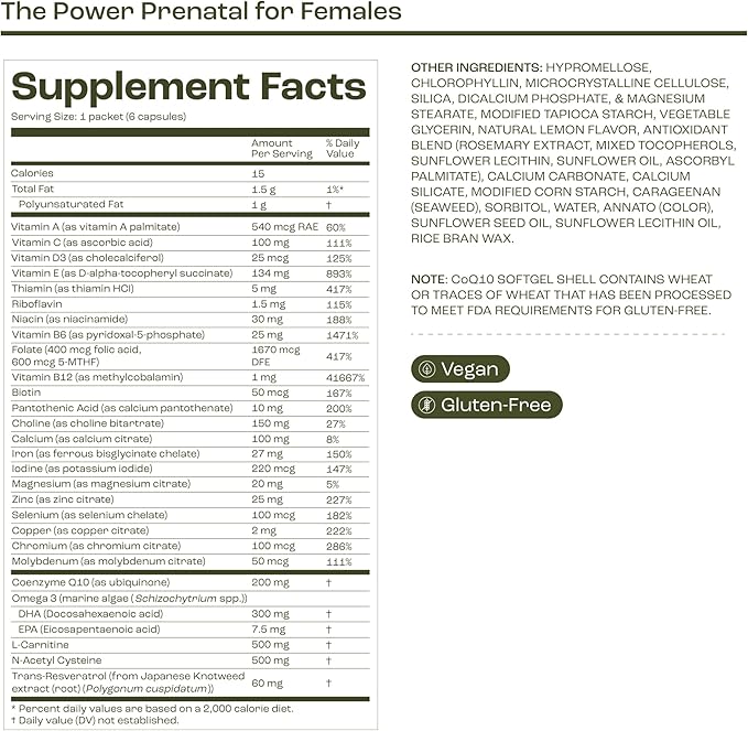 bird&be The Power Prenatal for Females - Fertility Support with Algae Oil DHA (Omega-3), CoQ10 and N-Acetyl Cysteine - 30-Day Supply (HSA/FSA Eligible)