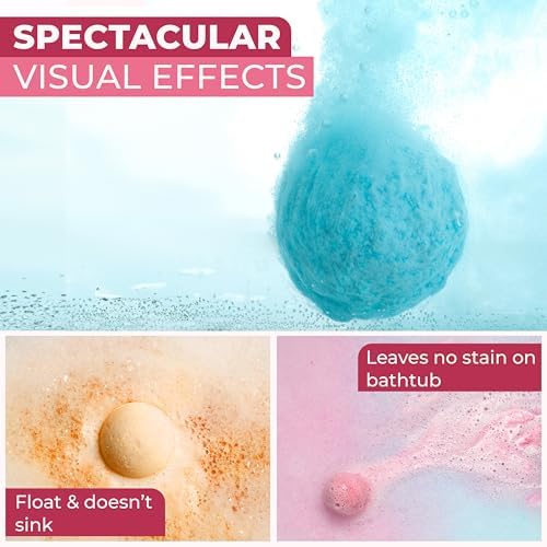 - SAFE & SOOTHING FOR EVERYONE: These bath bombs for girls are designed for a comforting and enjoyable bath experience. With a aromatherapy bath bombs gentle formula, they create a relaxing soak suitable for all ages, leaving the skin feeling refreshed and nourished. perfect for a soothing self care routine or fun bath time for kids.
