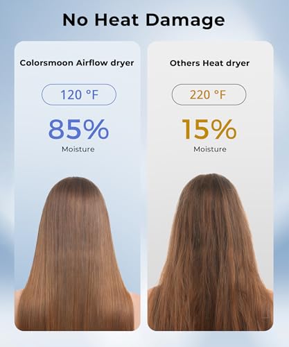 - Gentle Heat & Healthy Hair: We care about your hair's health as much as you do. Thanks to advanced temperature regulation, colorsmoon hair dryer with diffuser makes over 1,000 temperature checks per second. It ensures that the heat never reaches damaging levels, mimicking the gentle drying effect of natural sunlight. Say goodbye to heat-damaged hair and hello to a healthier mane