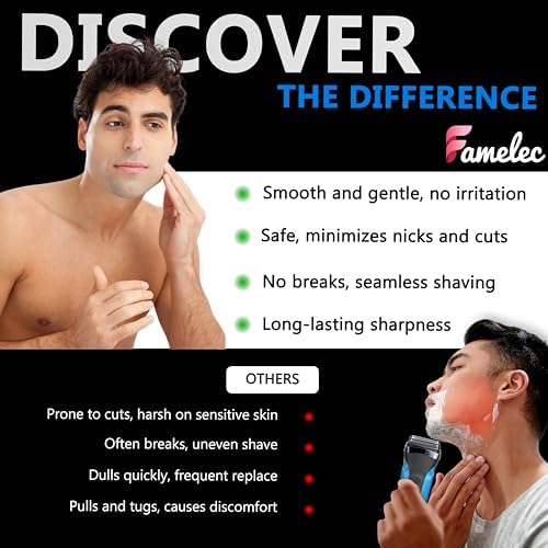 - ✂ Perfect Compatibility for Manscaped Models : FAMELEC offers premium replacement blades compatible with Manscaped Lawn Mower 4.0, 3.0, and 2.0. These replacement for Manscaped blades are designed to provide precise grooming for sensitive areas. Whether you need replacement for Manscaped 4.0 blades or fit for Manscaped 3.0 blades, FAMELEC ensures a flawless and safe trimming experience every time. For Manscape replacement blades, Fit manscape blade, lawnmower manscaped 3.0 bundle