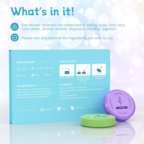 - [Long Lasting Scent] Made with safe materials, CalmNFiz shower steamers are individually packaged to preserve their fragrance, ensuring a pleasant and long-lasting scent