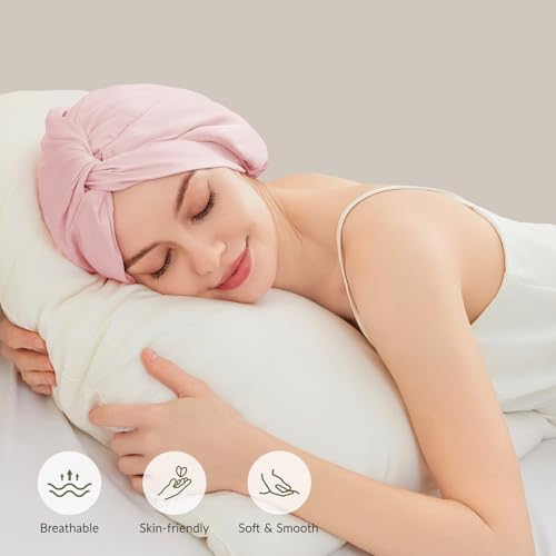 100% Mulberry Silk Bonnet for Sleeping Women, 22 Momme Grade-6A Double Layer Silk Hair Wrap With Elastic Band Stay On Head All Night(1PCS,Pink)