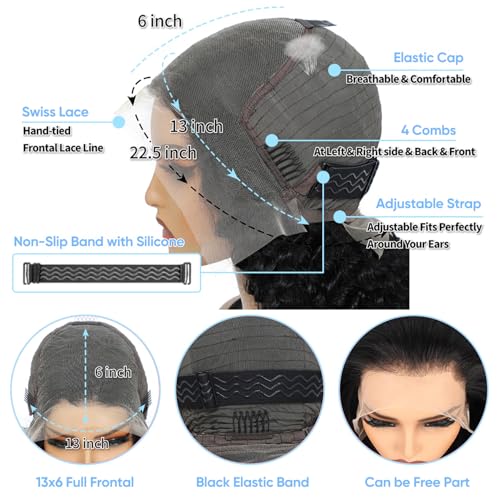 - 【Glueless Wigs Human Hair Pre Plucked Cap Size】13x6 Deep Wave Lace Front Wigs Human Hair Pre Plucked, (21.5-22.5Inch) Medium Cap with 4 Combs and Adjustable Strap, Easy to Adjust & Durable, More Comfortable to Wear