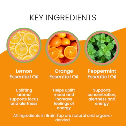 BRAIN ZAP Aromatherapy Roll On (12ml) for Energy, Focus, Mental Clarity, and Inspiration |Mood Lifting Citrus, Mint and Herbal Fragrance |Natural Study Aid | Birthday Gift | Wellness Stocking Stuffer