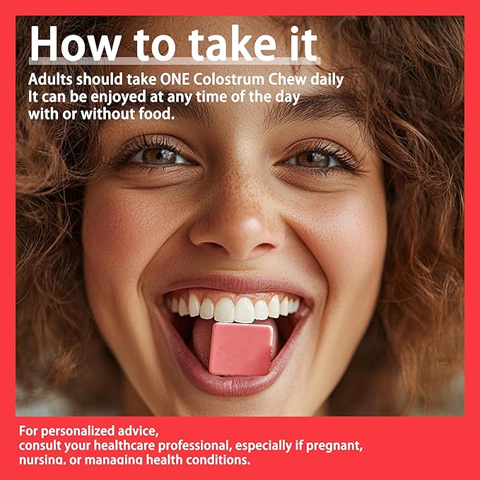 - Scientifically Supported: Crafted with care and supported by research, our colostrum chews provide valuable support for overall well-being. They are a reliable addition to your daily routine.
