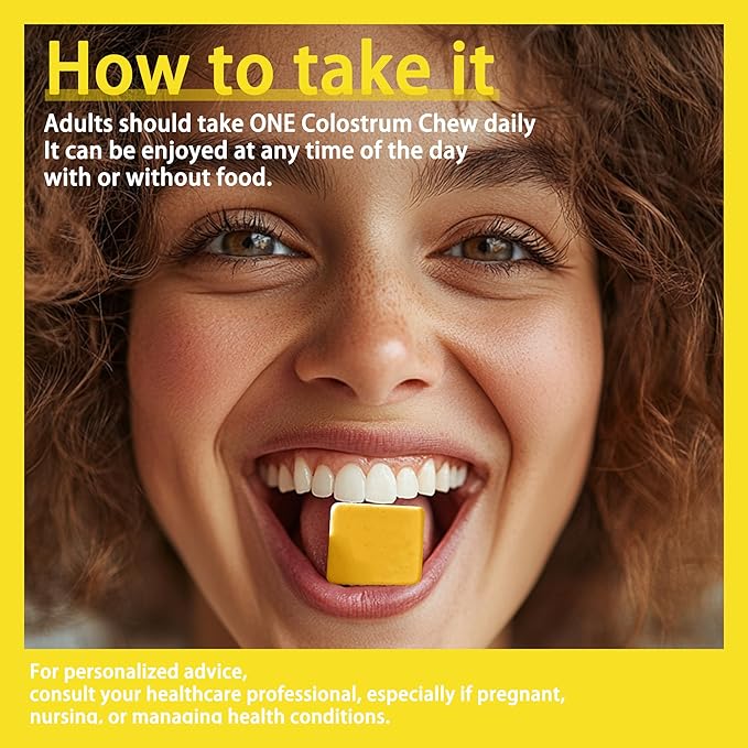 - Scientifically Supported: Crafted with care and supported by research, our colostrum chews provide valuable support for overall well-being. They are a reliable addition to your daily routine.