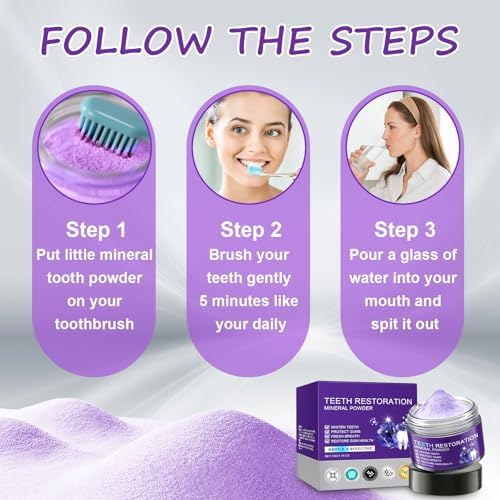 2025 New Teeth Restoration Mineral Powder Purple Natural Mineral Tooth Powder for Teeth Whitening Tooth Strengthening & Gum Care Fresh Breath