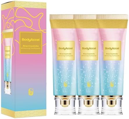 3 Pack Niacinamide Whitening Toothpaste, BodyAccel Triple Whitening Niacinamide Toothpaste, Brightens and Whitens Teeth, Stain Removal Natural Gentle, Fresh Breath