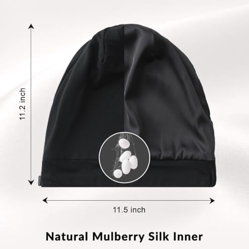 100% Mulberry Silk Bonnet for Sleeping Women Men, Real Silk Lined Sleep Cap with Adjustable Strap, Hair Wrap Slouchy Beanie for Curly Hair