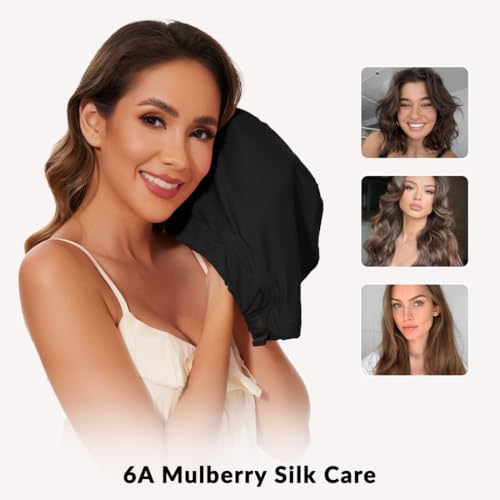 - 22 MOMME 100% MULBERRY SILK: Indulge in the softness of our 6A Grade 100% pure silk. This silk bonnet for sleeping women is designed to minimize friction, reducing hair breakage, frizz, and split ends. The breathable and temperature-regulating fabric ensures all-night comfort while keeping hair hydrated