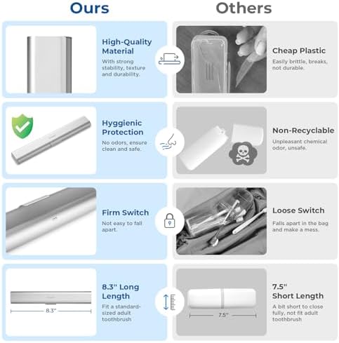 - High-Quality Material: Made of food-grade durable aluminum alloy, our travel toothbrush case is safe, non-toxic, odorless, and rust-free. Say goodbye to the common problem of the brittleness of plastic, as our toothbrush container stands the test of time with its robust build. Ensures your toothbrush stays clean and safe