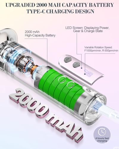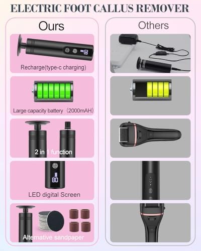 - 2000 mAh rechargeable battery: 2000mAh battery, type - C charging, 4h battery life in one full charge, LED smart screen, displaying battery level, gear, forward and reverse icon.Powerful foot care at home and on the go, no need for frequent charging!