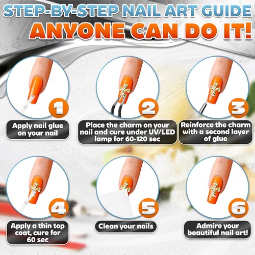 - Elegant & Long-Lasting Design: These Y2K nail charms gold elevate any manicure with sophistication. The silver cross nail charms for nails design offer a long-lasting shine, keeping nail art vibrant