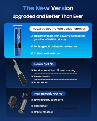 - Cordless and Rechargeable: Offers up to 2 hours of use on a full charge, providing long-lasting performance for efficient and durable foot care without frequent recharging.offers unparalleled flexibility and ease of use.Enjoy the freedom to move around without being tethered to an outlet