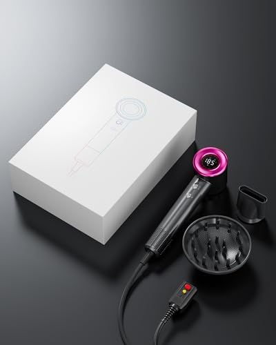 - 【Smart HD Digital Display】 Our hair dryer features a smart HD digital display that shows temperature and wind speed. Choose from 3 precise heat settings (65°F/140°F/185°F) and 2 speed settings (Gentle/Fast). With 6 unique combinations, find the perfect match for your hair type and achieve your ideal style effortlessly.