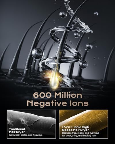 - 【Fast Drying & Superior Hair Care】 FMNCI High-Speed Hair Dryer features a 160,000 RPM ultra-high-speed brushless motor, delivering powerful airflow at 38 m/s—6 times faster than traditional dryers. Dry your hair in just 1-5 minutes. Say goodbye to long drying times and hello to sleek, shiny, healthy hair.