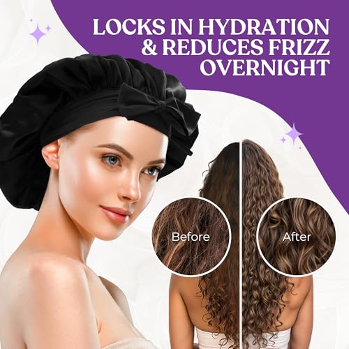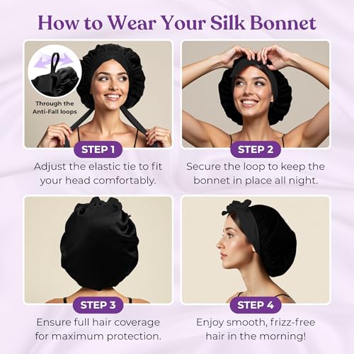 - Frizz-Free Mornings & Style Preservation: Wake up to smoother, shinier hair. This non satin bonnet silk locks in moisture, reduces split ends, and helps preserve curls, braids, blowouts, and more—ideal for maintaining your hair’s health and style effortlessly