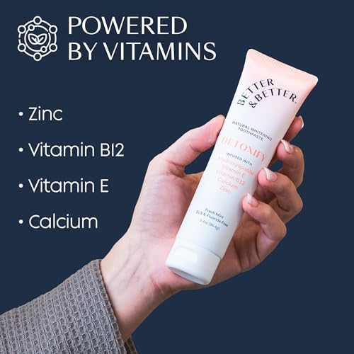 Better & Better Detoxify Hydroxyapatite Toothpaste | Whitening Toothpaste Infused w/Vitamins E & B12, Calcium & Zinc | Fluoride & SLS Free for Sensitive Brushers | Fresh Mint Flavor | 3.4oz, 1 Pack