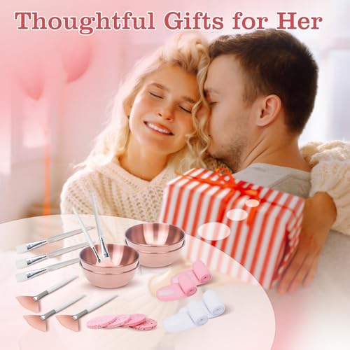 - All-in-One Facial Kit: This esthetician supplies set includes 4 rose gold facial bowls (3.5×1.2 in), 4 white-handled face mask applicators (5.9×2 in), 4 clear-handled mask brushes (6.7×0.8 in), 2 pink & 2 white adjustable headbands (22×3.1 in), and 4 compressed facial sponges(3.1 in).Perfect for your daily skincare routine at home