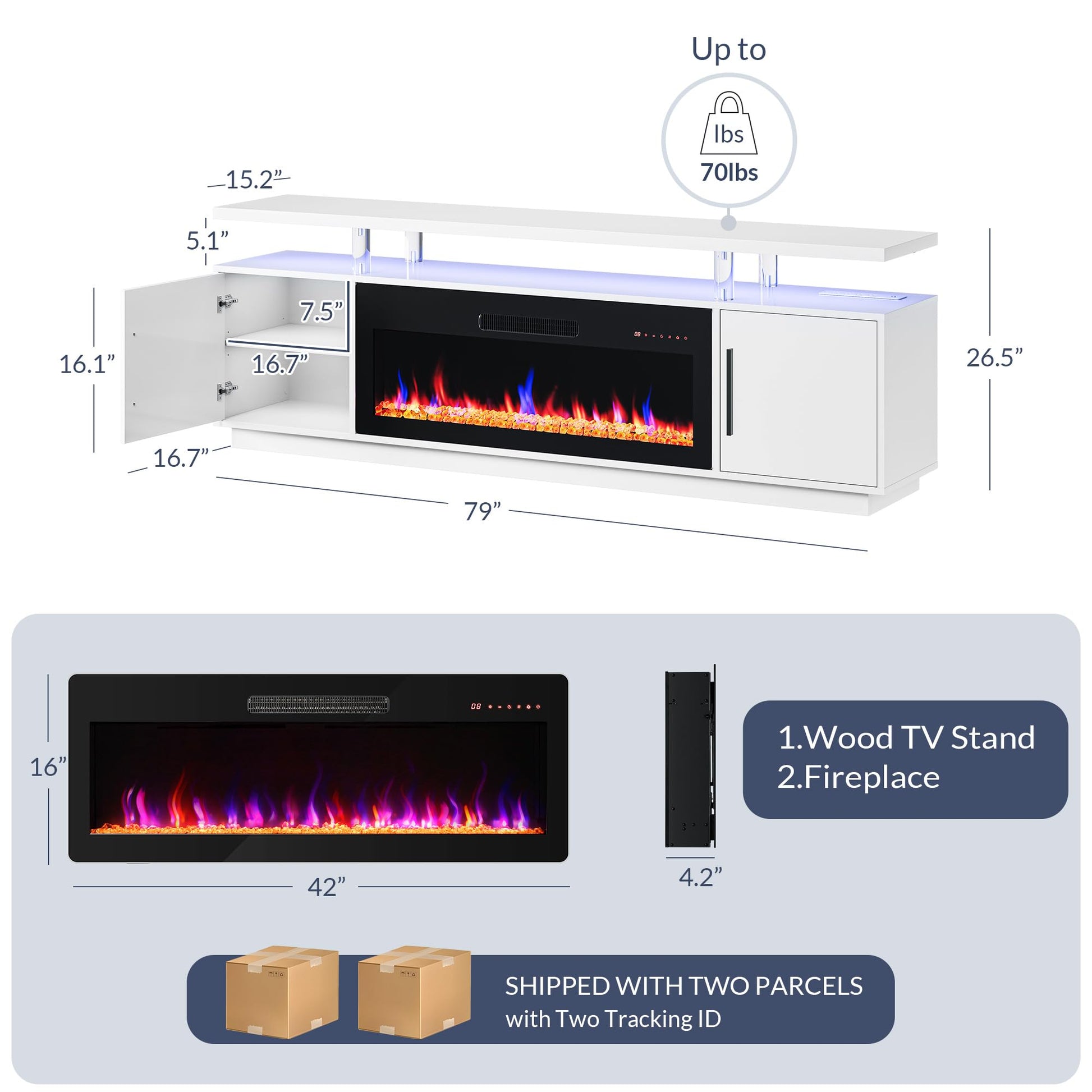 - [Multipurpose Design] This piece serves as a 79' TV stand, a media console table, and an electric fireplace. It reduces the number of furniture needed and saves space. It's made from high-quality manufactured wood with a premium high-gloss finish. It's available in black and white colors.