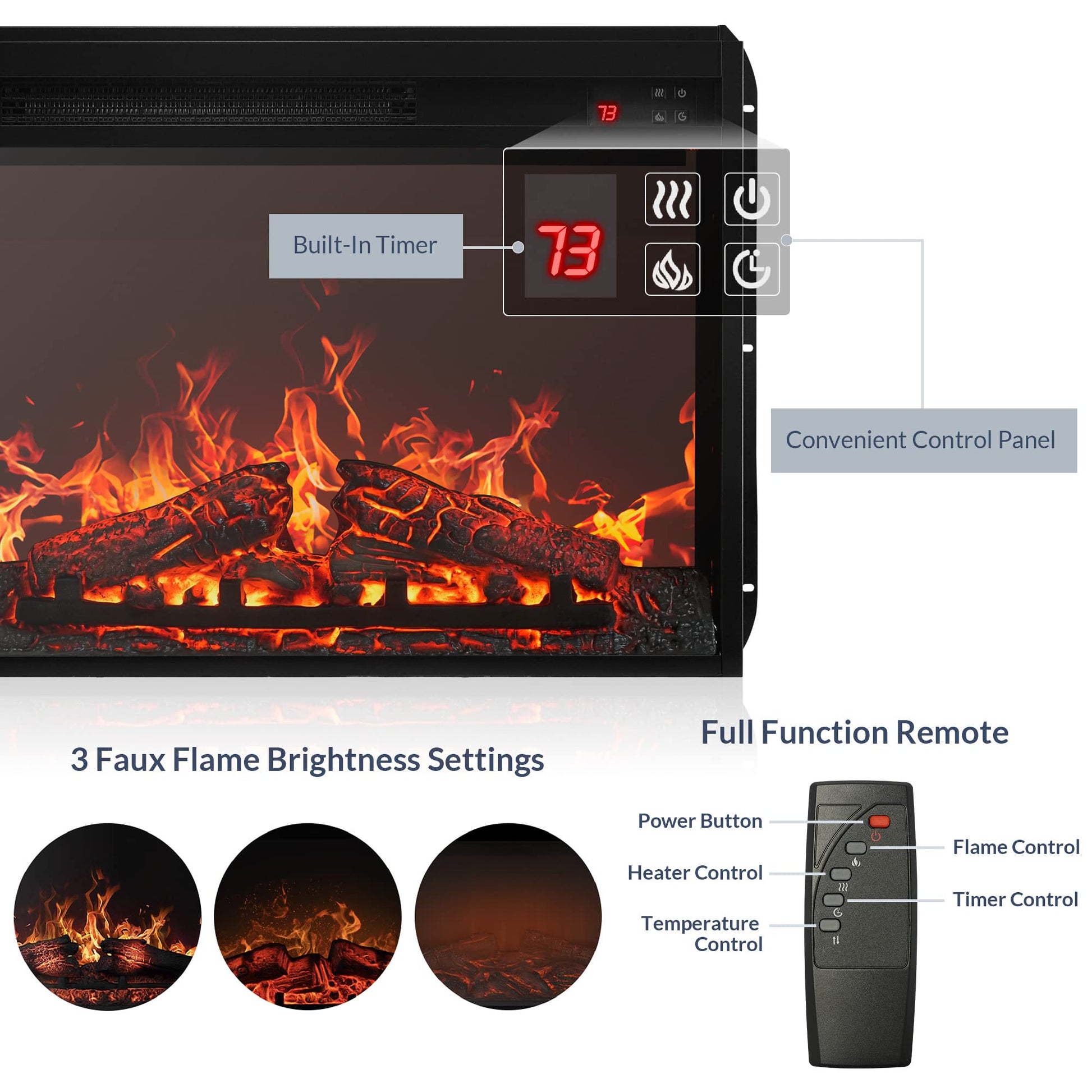 - [SAFETY FIRST] Designed with overheating safety protection, this fireplace automatically shuts down before it gets too hot. Use the included remote control to easily adjust the temperature. A LED display showcases the glowing embers for a realistic look.