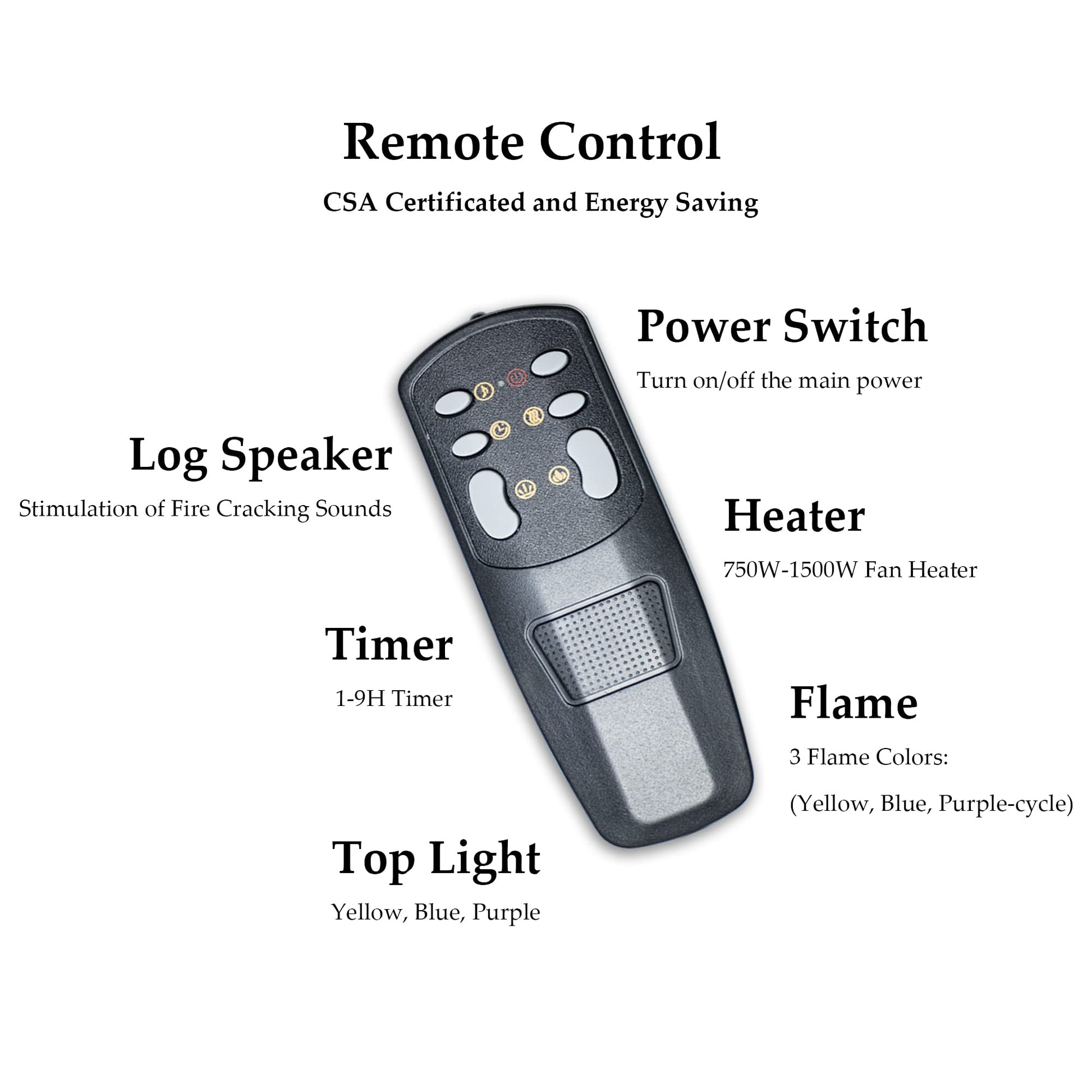 - Realistic Flames: Open the two-sided glass door and observe the lifelike flames without hindrance. Whole logs make the flame more atmospheric. And there are three colors of flame & top light: orange, blue, purple. Worth mentioning, the fireplace has a log speaker that simulates the sounds of fire burning.
