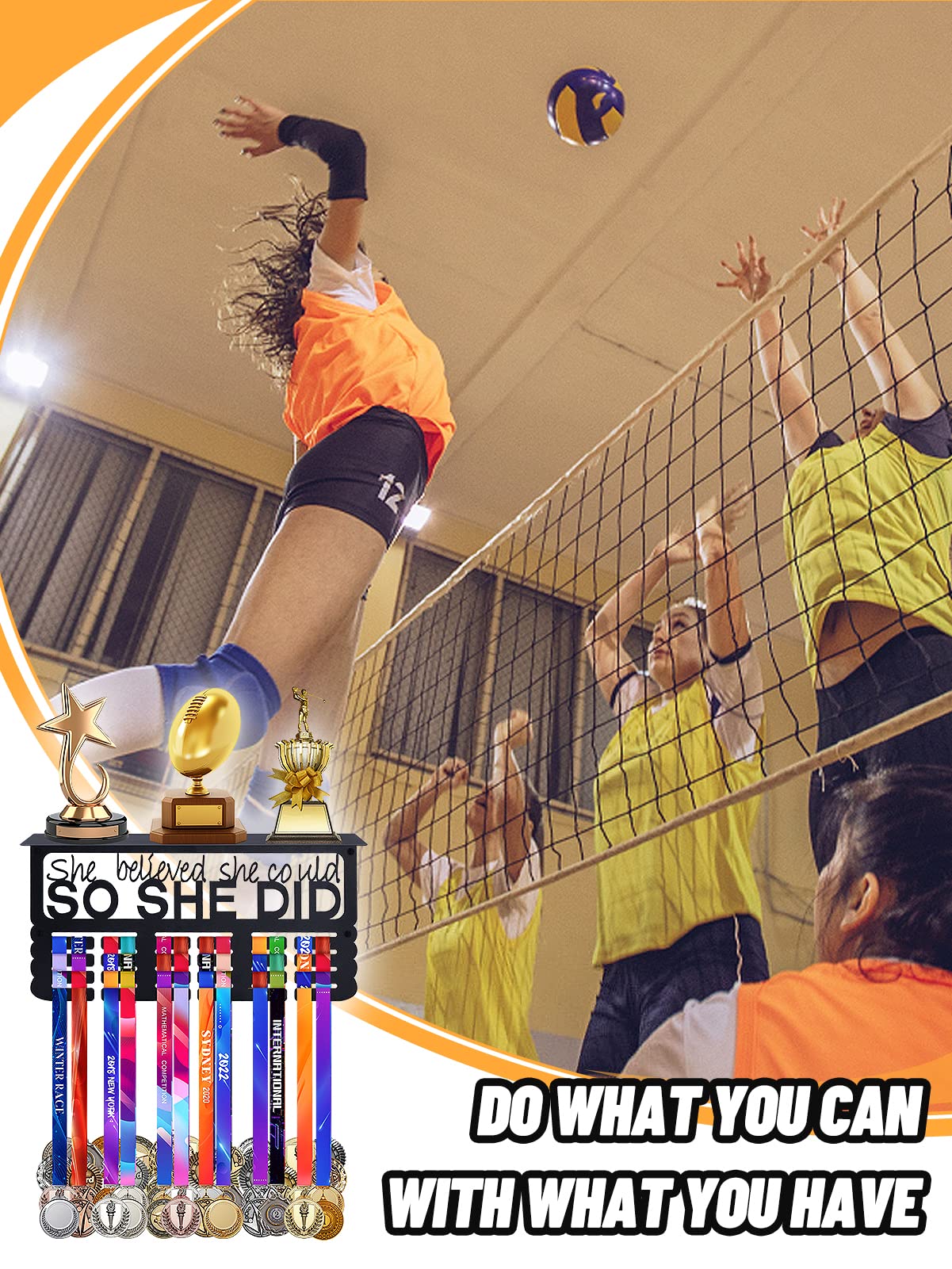 - Designed for More Medals: To achieve success, start now, do what you can with what you have. The sports medal holder has a total of 24 small metal brackets to hang over 70 medals, perfect for medal winners in swimming, gymnastics, martial arts, volleyball, basketball, marathon and more. Besides, you can also use to hang keys, towels or other small items if it has extra space.